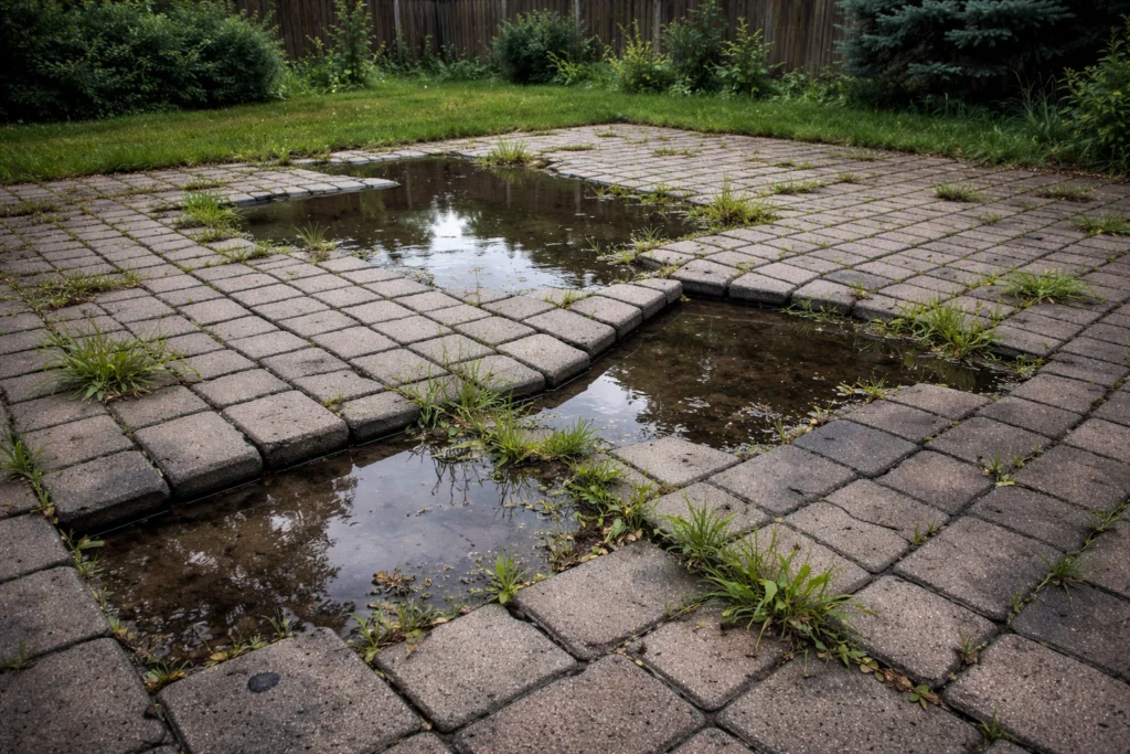 Water infiltration is one of the primary causes of paver movement. Poor drainage allows water to accumulate beneath the surface, weakening the base material and causing erosion.