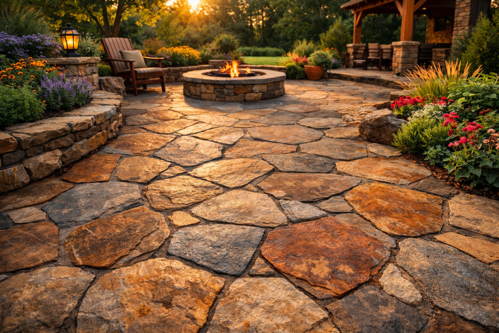 One of the biggest reasons people choose flagstone pavers is appearance. Natural stone has a depth and visual richness that is very difficult to replicate with manufactured materials. Each piece looks slightly different, which gives the finished surface a custom feel.