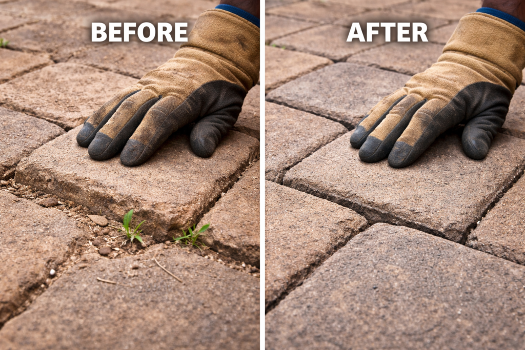 The right material helps protect the interlock, reduces maintenance, and keeps the surface looking cleaner for longer. The wrong one usually shows up later in the form of washout, weeds, and uneven pavers.